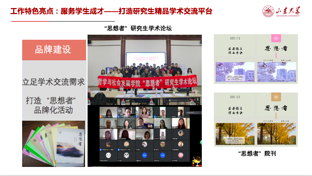 作为为数不多的拥有成熟院刊的学院,beat365英国官方网站目前形成以“思想者”为核心的学术活动品牌,为学生学术交流打造坚实阵地。本年度通过举办“思想者”研究生线上及线下学术论坛的形式,共筛选了10余篇高质量优秀论文,出版发行思想者杂志500余册。