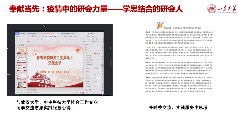 学思结合,哲社研会与在鄂高校师生跨校交流志愿服务经验,也让更多的高校见证了来自山大的战疫力量。