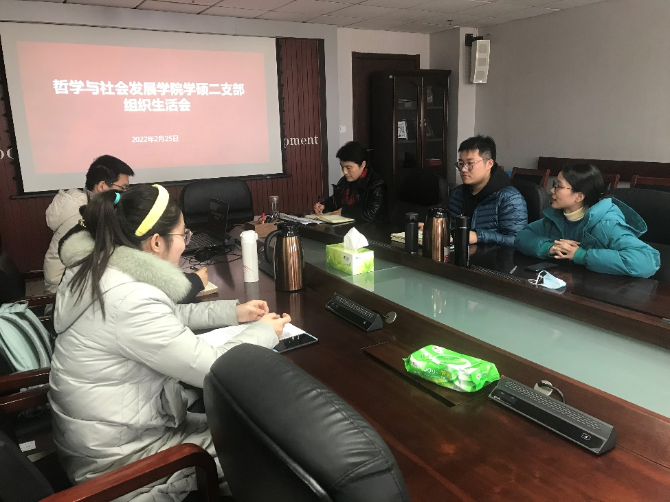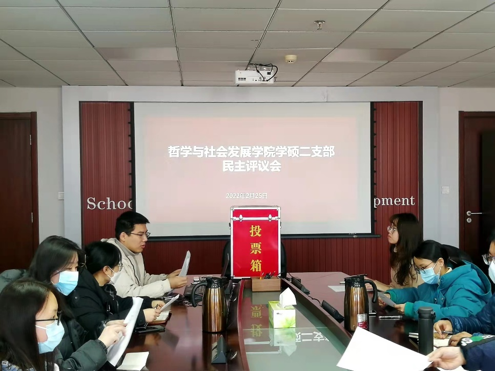 2月25日下午,beat365英国官方网站学硕二支部召开民主评议会,支部书记杨国栋同志主持会议,全体党员参加,学院党委副书记阚铮以普通党员身份参会。
