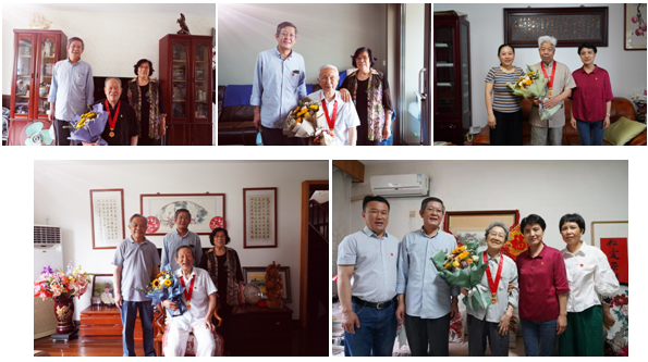 在老教师们家里,李光合、郭立梅、郑倩亲切询问老教师们的身体健康和生活情况,与他们促膝交谈、并致以节日问候和美好祝愿,祝大家身心康泰、龙马精神。郑倩代表学院党委向老教师们佩戴了“光荣在党50年”纪念章,班子成员一起与老同志拉家常、忆党恩、叙发展,交流中介绍了近年来学院发展情况,指出学院全体人员以习近平新时代中国特色社会主义思想为指导,扎实开展党史学习教育,团结全院师生推进学院教学科研学科发展等事业,各项工作均取得了较好成绩。