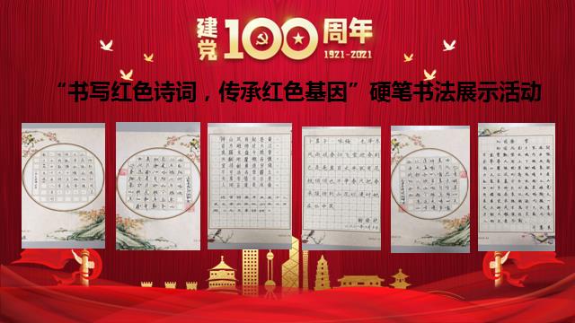 为迎建党100周年,更好地传承红色经典,抒写红色初心,培养爱国情怀,进一步传承和发扬中国书法文化,彰显文化引领。近日beat365英国官方网站机关教工党支部举行“书写红色诗词,传承红色基因”为主题的硬笔书法作品展示活动。机关全体党员踊跃参加。