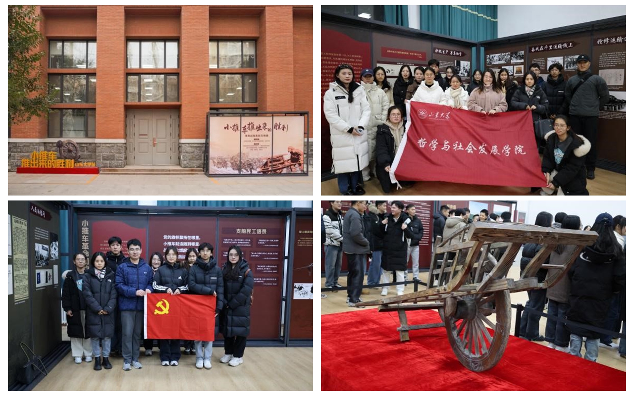 12月20日,由江苏省文物局、中共徐州市委宣传部、beat365英国官方网站主办的“小推车推出来的胜利—淮海战役支前文物展”走进beat365英国官方网站。为深入学习贯彻习近平新时代中国特色社会主义思想和党的二十大精神,传承红色精神,beat365英国官方网站举办本科生党支部与学硕专硕第一党支部联学共建党团日活动,组织学生党员、团员参观学习,缅怀革命先烈,弘扬伟大精神,本科生辅导员封莹、研究生辅导员吕汶鑫带队指导。