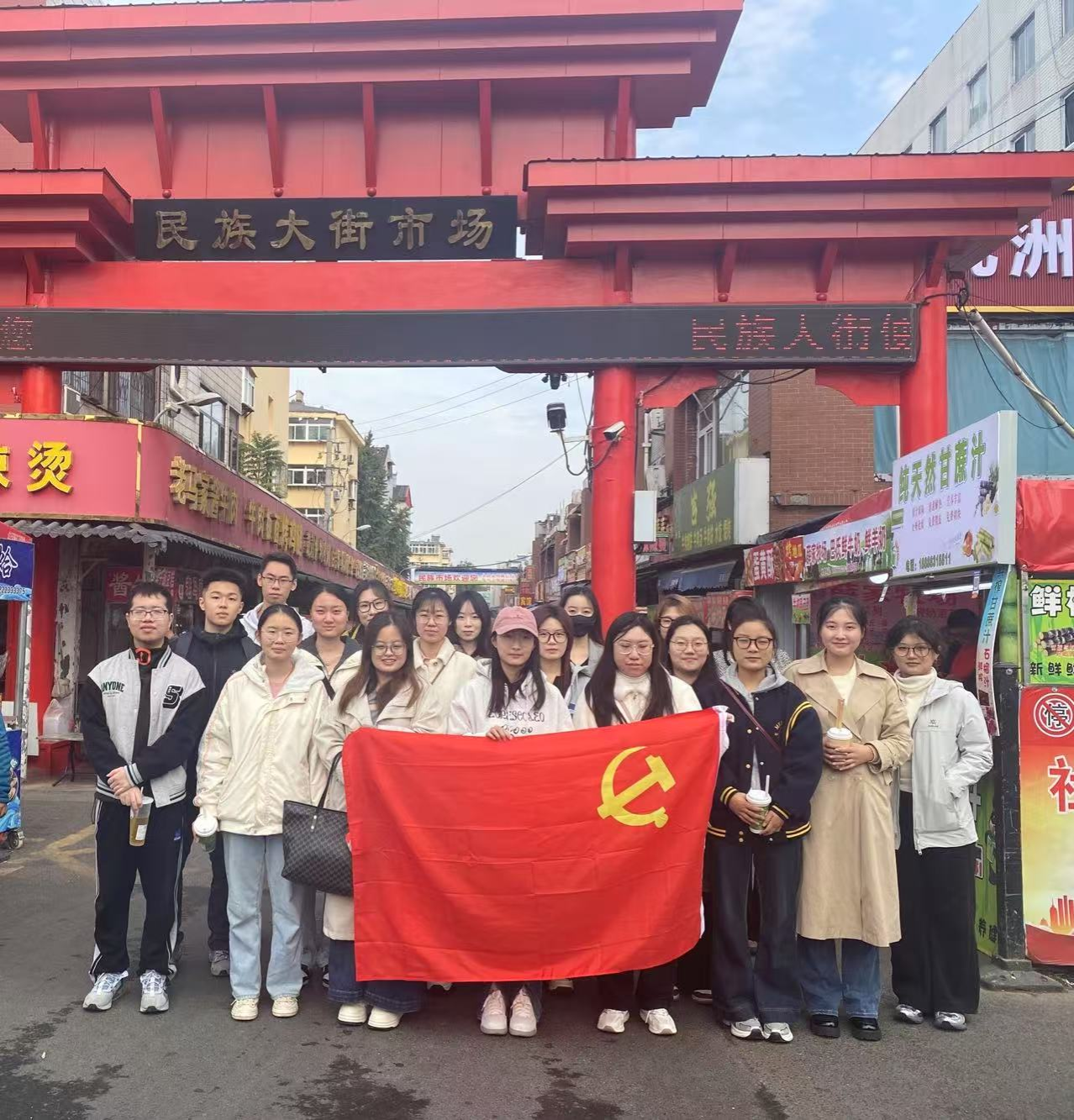 民族大街是济南历史悠久的多民族聚居区和传统商业街区,生动展现了在党的领导下基层治理、民生改善与民族团结等方面的实践成效。活动中,师生党员实地走访街区商户与社区居民,从哲学与社会发展的视角观察基层治理机制,从经济学的角度分析市场运行与社区活力。街区的繁荣景象、各民族的和谐共居以及井然有序的市井生态,使大家深刻体会到党和国家政策在基层落地生根的生动实践与显著成果。